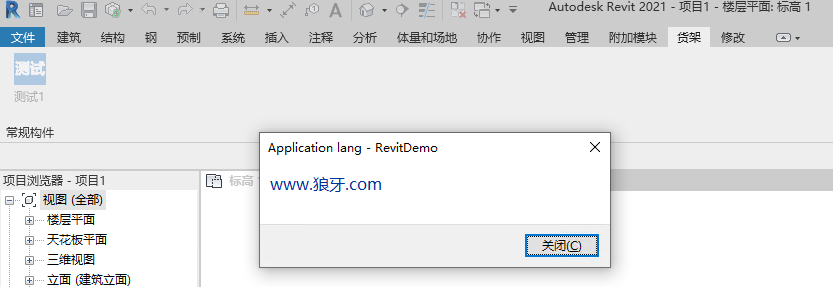Autodesk.Revit.UI.TaskDialog.Show("RevitDemo", "www.狼牙.com");