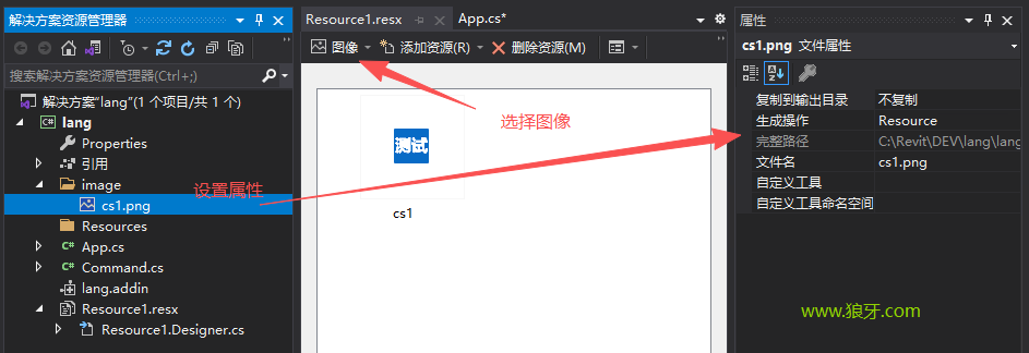 解决方案管理器=》项目右键选属性=》添加=》新建项=》=》资源文件